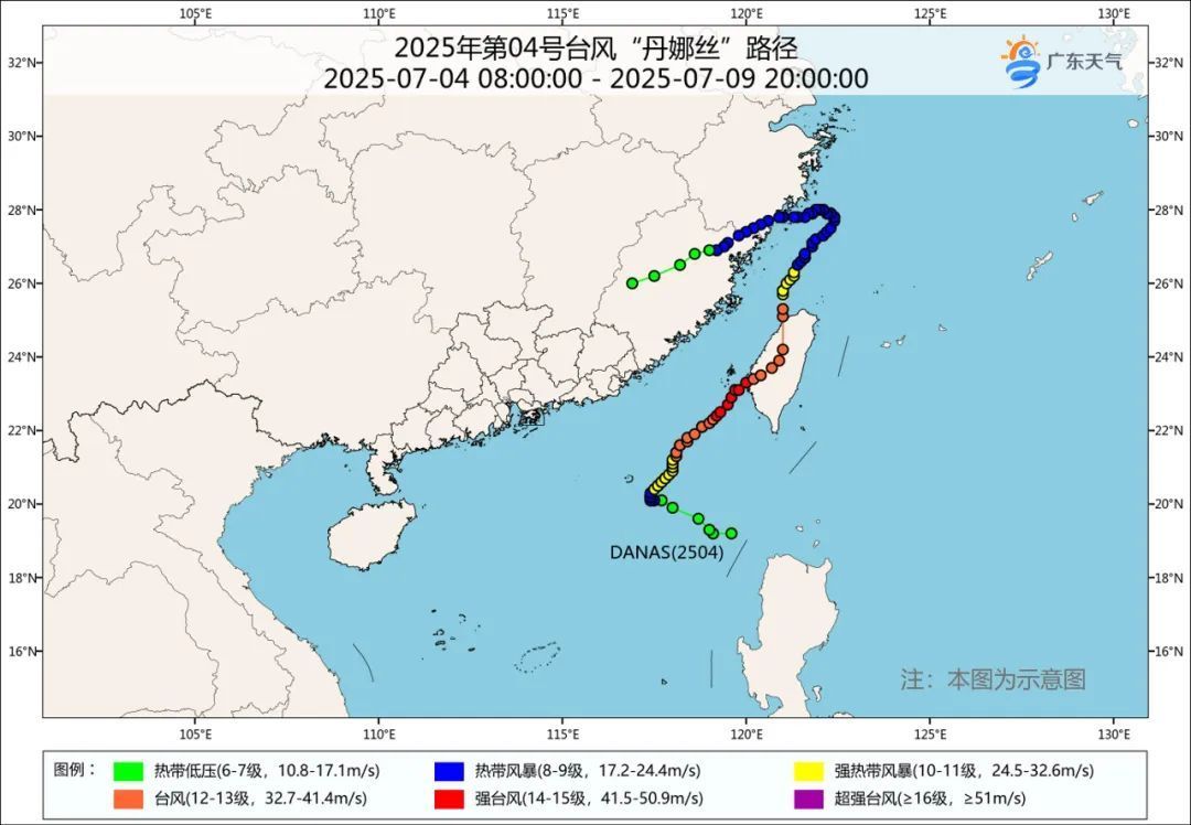 今年第4号台风“丹娜丝”于7月5日02时在南海中北部生成,7日—8日先后登陆台湾省(台风级)、浙江省温州市洞头区沿海和瑞安市沿海(热带风暴级),9日23时在福建省三明市减弱停编。