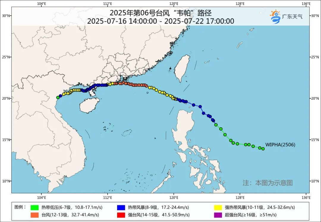 今年第6号台风“韦帕”于7月18日02时在菲律宾以东洋面生成,进入南海后靠近广东省海岸并沿岸西行,20日先后登陆广东省江门台山和阳江海陵岛,22日上午在越南第三次登陆。