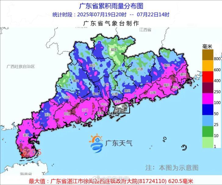 除粤西市县有雷阵雨局部暴雨外,其余市县普遍有大雨到暴雨局部大暴雨。最高气温:粤西大部市县介于31~33℃,其余大部市县介于28~30℃。