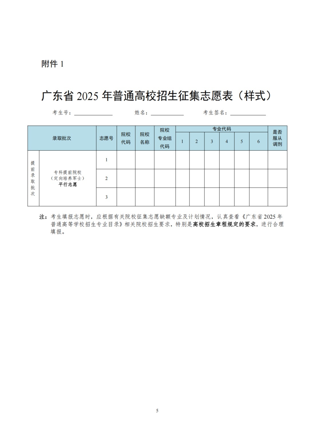 1.广东省2025年普通高校招生征集志愿表(样式)